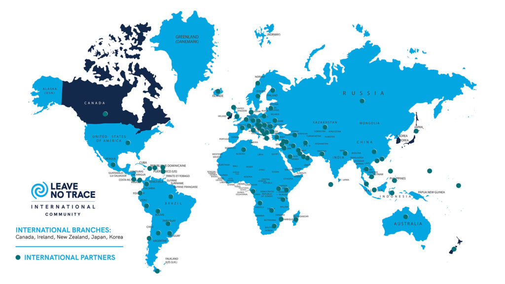 Leave No Trace travaille depuis longtemps avec la communauté internationale, en collaboration avec des ONG, des agences foncières, des gouvernements, des entreprises et des organisations d'aide à la jeunesse dans plus de 90 pays.