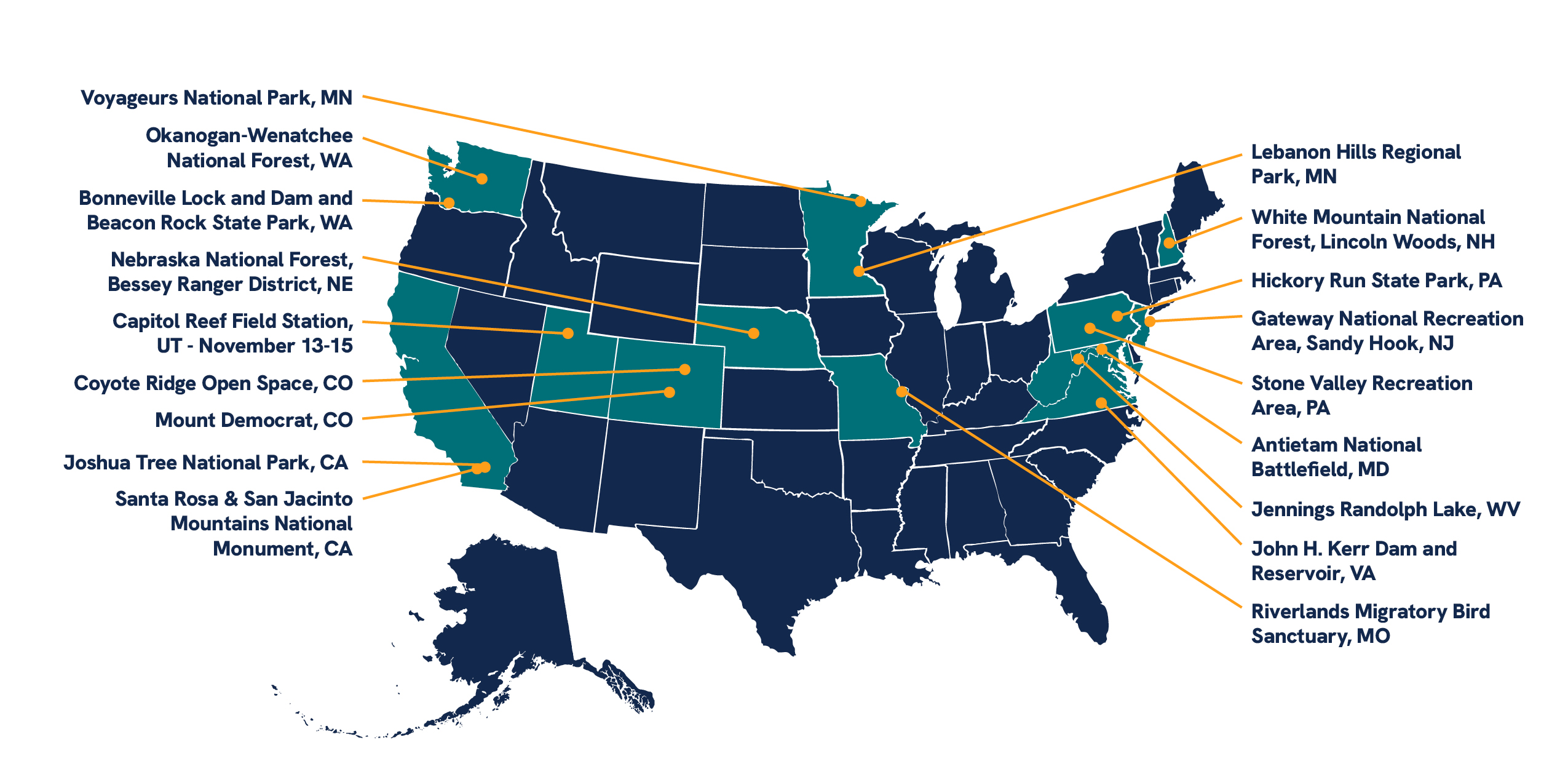 Spotlights turn awareness into action, creating lasting connections and collective impact that extend well beyond a single gathering. Selected sites for this FREE program range from national parks and forests, to state or municipal parks, to local nonprofits and organizations.